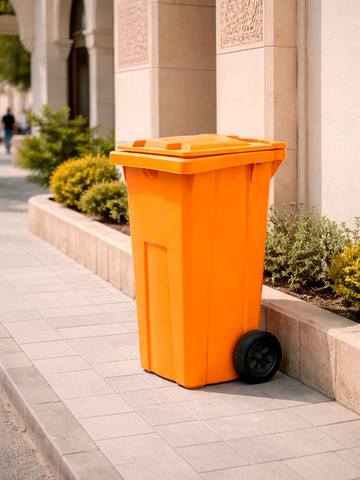 Оранжевый контейнер для мусора 120 л — это решение, созданное для объектов, где важны высокая видимость, порядок и структурированный сбор отходов. Такой мусорный контейнер уличный часто используют на производственных территориях, в коммунальных службах, на стройплощадках, парковочных зонах и в частном секторе, где требуется контрастная маркировка.