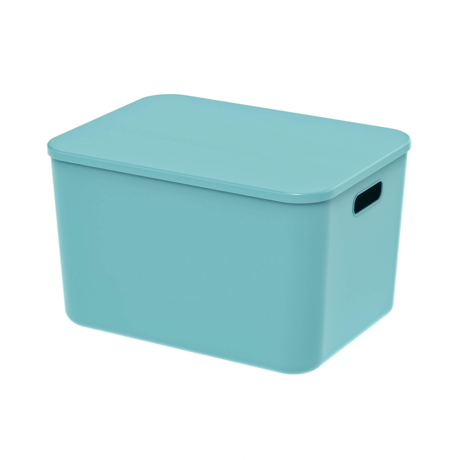 Ящик пластиковый вкладываемый 410х305х245 мм, бирюзовый, с крышкой – идеальное сочетание стиля и удобства